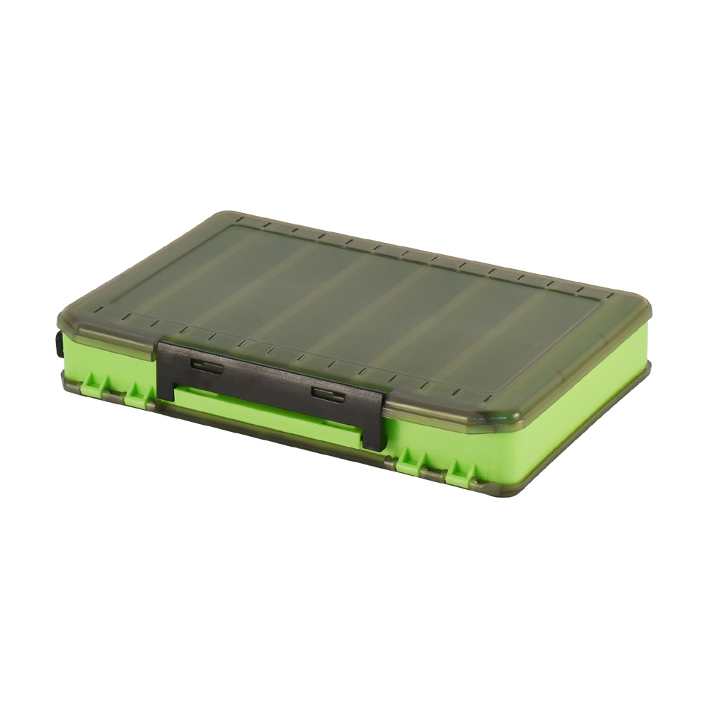 Κασετινάκι διπλής όψεως 14 θέσεων ιδανικό για τη φύλαξη τεχνητών δολωμάτων, τα οποία αποθηκεύονται με τέτοιο τρόπο ώστε να μην χτυπιούνται μεταξύ τους και να μην μπερδεύονται τα αγκίστρια ή οι σαλαγκιές τους. Οι θήκες του έχουν τριγωνικό σχήμα και διατίθεται σε έντονο πράσινο χρώμα με μαύρα ημιδιάφανα καπάκια ώστε να διακρίνεται το εσωτερικό του. Μετά τη χρήση μπορεί εύκολα να πλυθεί καθώς διαθέτει σύστημα αποστράγγισης.