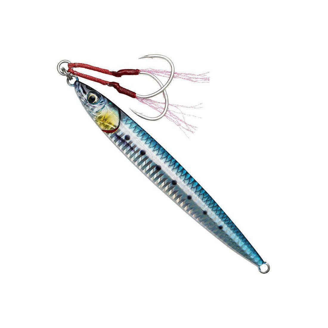 Το επίμηκες σώμα του αποτελεί ένα ακόμα πλεονέκτημα, καθώς προσφέρει στα μεγάλα ψάρια στα οποία αναφέρεται την «υπόσχεση» ενός καλού γεύματος. Είναι έτοιμος αρματωμένος με πολύ δυνατό και αιχμηρό, διπλό Assist Hook με ιριδίζουσες τρέσες και επιστρωμένος με πολύ ανθεκτικό στις καταπονήσεις του jigging, βερνίκι.